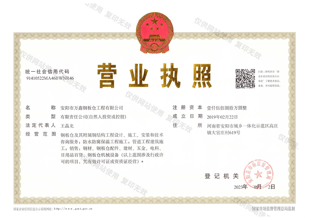 咨詢熱線:15994126145 159-9412-6145 聯系人:王經理 地址:河南省安陽市湯陰縣古賢鄉新型材料產業園區新縱二路南段東側2號 版權所有(you)(you):安陽市萬(wan)鑫鋼(gang)板倉工程有(you)(you)限公(gong)司(si)